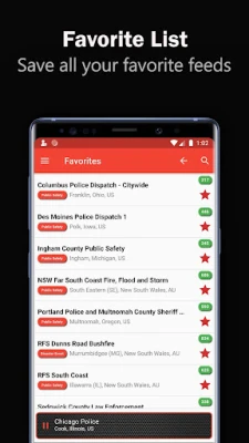 Police Scanner Online / Offline indicators makes it easy to tell if the audio feed is currently Online. Stream your favorites police feeds in the background and pause/play at any time through your phones notifications. Search for your desired police station radio by using Search, Top 200, Favorites or Navigate through Country / State / County location near you.