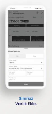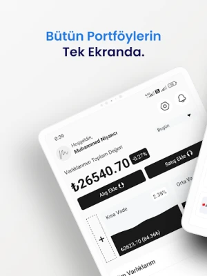 Uygulamamız ile borsada işlem yapar gibi alış ve satış işlemlerinizi ekleyin. -Maliyetiniz, -Elinizdeki Adet, -Alış Tutarınız, -Karınız/Zararınız -Anlık Portföy Değeriniz, -Anlık Tüm Varlıklarınızın Değeri, -Toplam Kar Oranınız -Toplam Kar Tutarı Otomatik olarak hesaplansın.