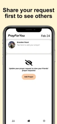 In order to view your friends’ prayer requests, you need to share yours first! Every 24 hours your prayer request will “expire” and you will need to share a new one in order to continue seeing your friends’ requests. PrayForYou is a simple app meant to be used within your church communities, campus ministries, or simply between your friends and family!