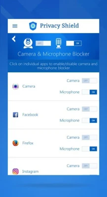 Camera Blocker – Block the use of camera without your authorization, and whitelist which applications are allowed to use it.