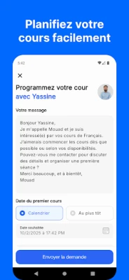 Réservation rapide et sécurisée : contactez un professeur et fixez un cours selon votre emploi du temps.