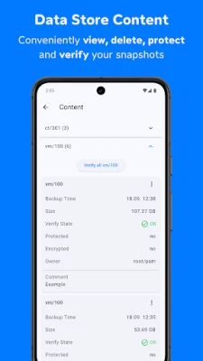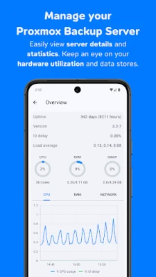 • TOTP Support • Monitor the resources and details of your Proxmox Backup Server • Get details about Data Stores • View disks, LVM, directories, and ZFS • Convenient task summary for a quick overview • Detailed task information and syslog • Show details abound backed up content • Verify, delete and protect snapshots • Restart or Shutdown your PBS