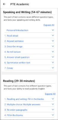 This app provides preparation materials for PTE, IELTS and TOEFL all in one place. This is the best app if you want to compare these test to decide which test to book. You will also find test format, sample questions and tips on how to attempt the test.