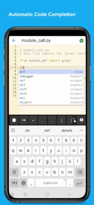 • Python Editor & IDE – Write Python code with a full-featured editor offering syntax highlighting, smart indentation, code auto completion, and dark mode.
