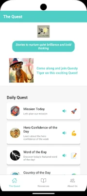 At the heart of Questy Kids are engaging, story-based adventures that introduce children to a wide range of science topics—like animal migrations, weather patterns, ecosystems, and space—making learning fun and meaningful. Each day, kids unlock new quests featuring word games, global discoveries, confidence-building tips, and hands-on experiments designed to inspire curiosity and critical thinking.