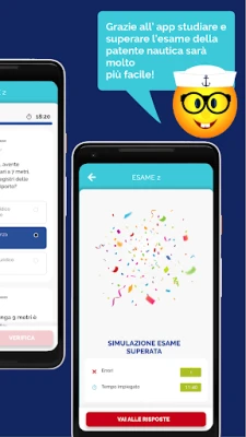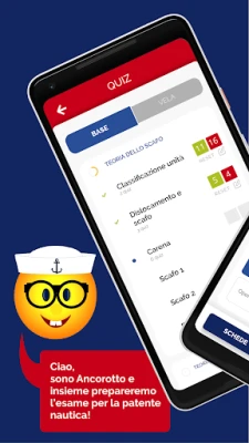 Questa App comprende tutti i 1435 quiz base e i 250 quiz vela aggiornati al nuovo sistema d’esame. Il punto di forza di questa App è la suddivisione degli argomenti ministeriali in 183 schede didattiche con immagini, schemi e animazioni accompagnate da altrettante audiolezioni. Questo sistema ti consente di memorizzare facilmente e velocemente tutti i concetti necessari per la risoluzione dei quiz.