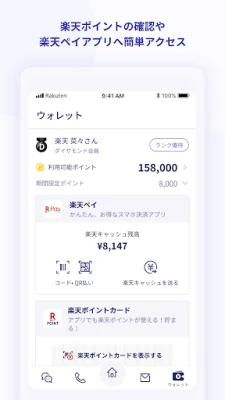 ■ウォレット:楽天ポイントの確認や楽天ペイアプリへ簡単アクセス