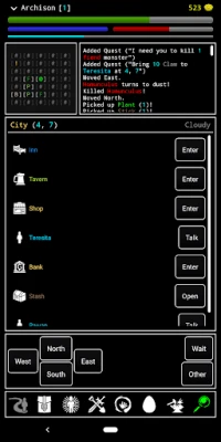 A solo indie-dev aims to bring an old-school style to modern day Android devices. This is accomplished with an easy to understand interface, a few iconic buttons, and several information screens. Players are empowered to navigate a proceedurally generated world full of danger and treasure.