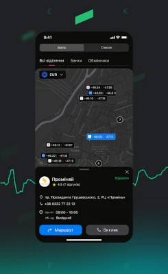 – інтерактивна карта обмінників з поточними курсами