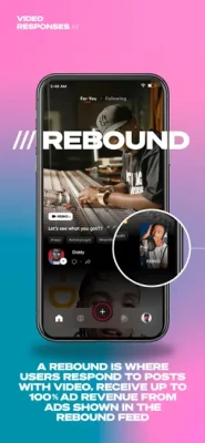 A video platform where creators earn up to 100% ad revenue and users engage content with video responses we call rebounds