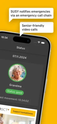 SUSY is a digital assistance system for the elderly, that enables them to live safely at home. With video calls, image, video, text and voice messages, elderly people can stay in touch with their loved ones and caregivers at any time, even in case of emergencies. SUSY is the ideal solution for those, who want to live in their familiar home for a long time. The SUSY system includes a base station and this SUSY app.