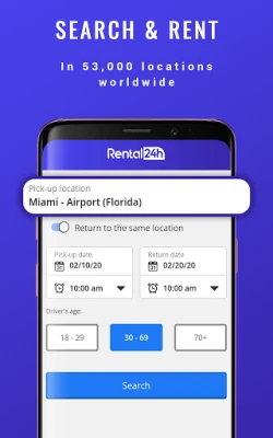 Rental24H.com dan Araba kiralama uygulaması, dünya çapında 1600'den fazla araba kiralama firmasının araba kiralama tekliflerini karşılaştırmanıza ve yakınlarınızdaki en uygun araba kiralama firmalarını bulmanıza yardımcı olmak için tasarlanmıştır.
