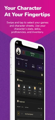 The Roll20 Companion App is everything a player needs at game time! Keep your characters at your fingertips at home, the game store, or wherever your adventures take you. Access your 5E character sheet from your mobile device and get your character’s info at-a-glance including your armor class, feats, and inventory.
