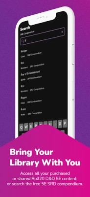 View your character’s stats and skills during your game session, including your spell DC and proficiencies. Track inspiration, spell slots, hit points, ki points, and sorcery points. Ready to roll for initiative or make an ability check? Let us do the math for you. Dice rolls made in the app are also sent to the Roll20 VTT chat, powered by our signature quantum roll server.