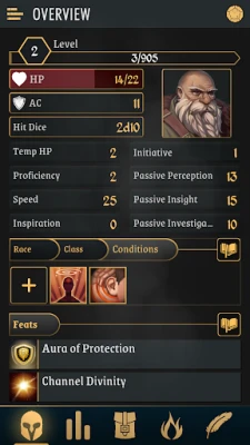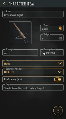 • Keep track of your character's attributes, spells and items.,