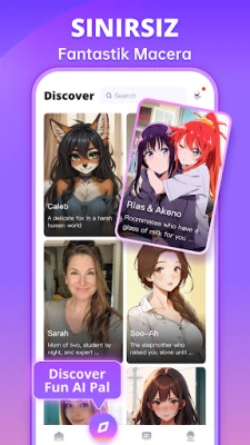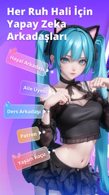 Hayal gücünüzün sınırlarını zorlayın! Anime karakterleri, sanal eşler, idol simülasyonları veya kendi yarattığınız özel karakterlerle gerçekçi diyaloglar kurun. Dilediğiniz senaryoyu canlandırın: Bir kahraman, bir sevgili, hatta uzaylı bir arkadaş… AI sohbet botlarımız 7/24 size insana yakın duygusal destek sunar.