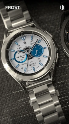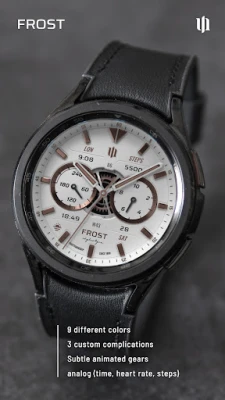 Enhance your Wear OS experience with the S4U Frost. A white realistic classic analog watch face with 3 custom complications and many customization options.