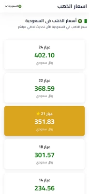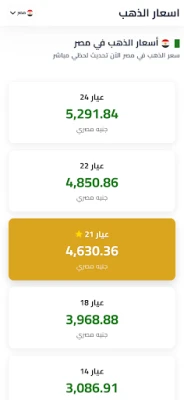 🔸 تحديث لحظي اسعار الذهب بجميع العيارات عيار (24، 22، 21، 18، 14).