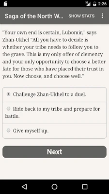 "Saga of the North Wind" is a 300,000-word interactive fantasy novel by Tom Knights, where your choices control the story. It's entirely text-based—without graphics or sound effects—and fueled by the vast, unstoppable power of your imagination.