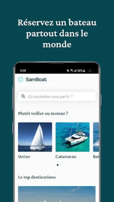 Samboat est le leader de la location de bateaux qui permet aux passionnés de l’eau de partir en voyage et à l’aventure entre amis ou en famille. Parmi plus de 50 000 bateaux de particuliers et de professionnels à travers le monde, comparez et réservez votre location (voilier, catamaran, yacht, etc) à la journée ou pour vos vacances, comme sur Airbnb. Avec ou sans skipper, découvrez la pêche, le ski nautique et bien d’autres activités.