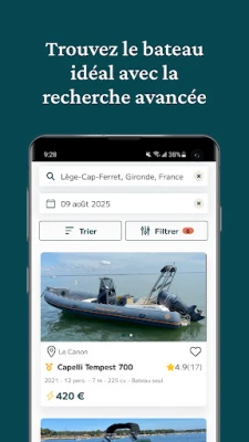 Grâce à votre géolocalisation, trouvez un bateau en un clic et rentrez en contact avec le propriétaire pour échanger sur vos besoins. Pour réserver votre bateau, remplissez et signez le contrat de location sur l’app via un contrat dématérialisé. Aussi simple et rapide que sur Airbnb !