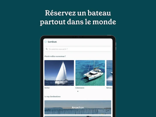 Envie de partir à l’eau entre amis ou en famille pour une aventure à bord d’un bateau ? Samboat est l’appli idéale pour vos journées, vacances et voyages en France et à travers le monde. Paris, Marseille, Bordeaux, Côte d’Azur, Bretagne, Martinique, Guadeloupe, Cap Ferret, Corse, etc. Partez en croisière sur un voilier habitable, ou à bord d'un bateau à moteur pour profiter entre amis ou en famille. Pour une détente maximale sur l’eau turquoise, réservez un catamaran en location avec skipper. Nos locations de bateaux vous permettent également de goûter à l’aventure en faisant du wakeboard, snorkeling ou du ski nautique. Pour les fans de pêche, faites la location d’une sortie de pêche sportive dans les meilleurs spots.