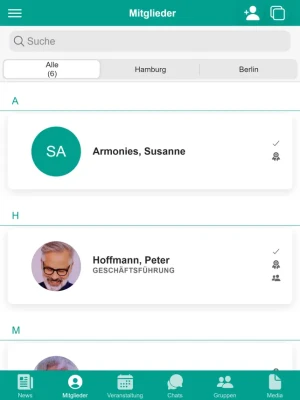 Organisieren Sie Ihr Clubleben vollumfänglich digital: Kommunikation von Neuigkeiten und Mitgliederzeitschriften, Verwaltung aller Mitgliederdaten, Erstellung von Projektgruppen, Organisation von Veranstaltungen mit Zu- und Absagen, Einzel-, Gruppen und Organisations-Chat, Bereitstellung von Dokumenten, öffentliche Fotopinnwand und vieles mehr...
