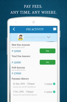 - Get details of fees paid and also an option to pay directly from mobile