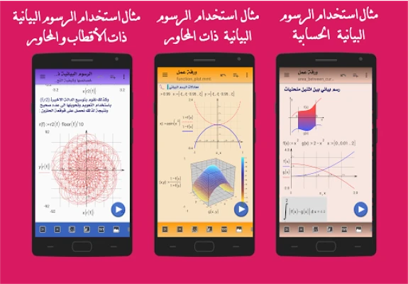 Graphs and three-dimensional: There are types of graph and not one type such as surface graphs or axes and 3D graphs, and you can add them directly from the buttons below the screen and put variables and mathematical equations on them easily.