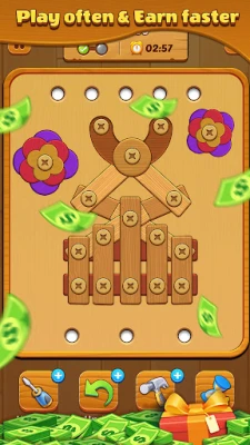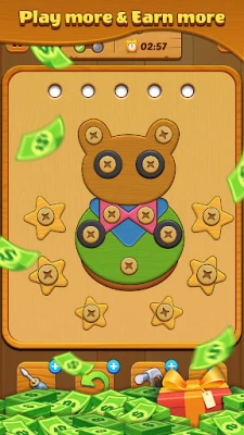 Screw Slots - Play & Earn Cash is a puzzle game and have a rewarding experience! Earn money and prizes as you complete levels. More than hundreds of levels giving you the chance to boost your progress and unlock new challenges. The game’s reward system ensures every step feels satisfying.