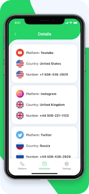 Main features: - Access thousands of phone numbers over world-wide. - If you couldn't get SMS, just cancel and try another phone number. Your credit don`t be spent. - You can see all past activations history.