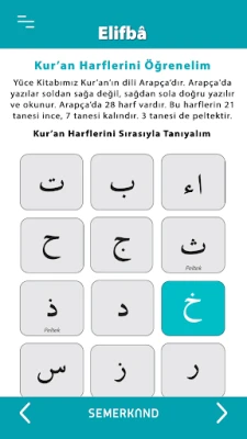 Temel harflerden başlayarak, adım adım Kur'an okuma becerilerinizi geliştireceğiniz bu ücretsiz uygulama ile kısa sürede mukaddes kitabımız Kur’an-ı Kerîm’i okumaya başlıyoruz.