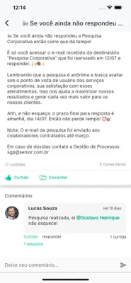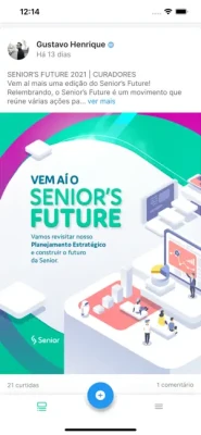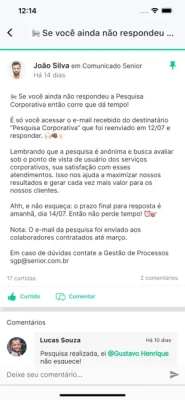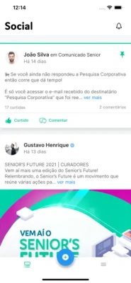 Acompanhe os comunicados, curta e comente as novidades de sua empresa que utiliza a Rede Social Corporativa da Plataforma Senior X.