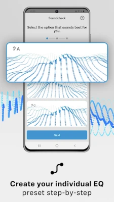 - Sound Check – Guided process helps you find the best EQ setting for your personal hearing