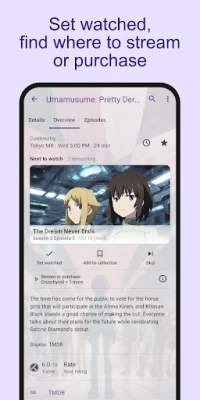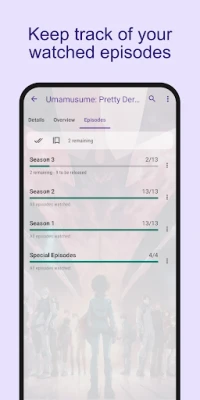 İşaretleyin ve takip edin: izlediğiniz bölümlerin ve filmlerin kaydını tutun, ilerlemenizi görün. Yeni bölümlerden haberdar olun.