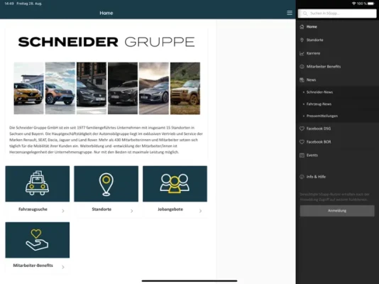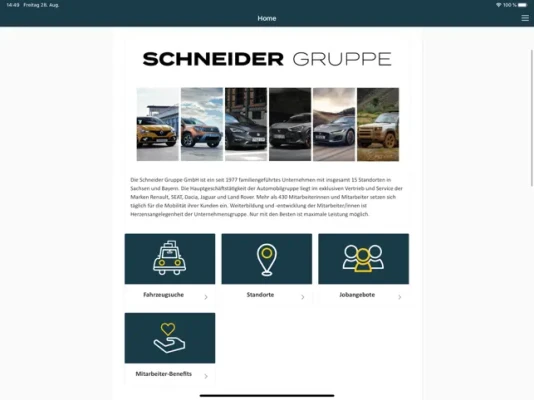 In den Standortinformationen finden Sie alle Standorte in Sachsen und Bayern auf einen Blick. Entdecken Sie unter "Mitarbeiter-Benefits" alle Vorteile, die Sie bei uns als Mitarbeiter genießen, nutzen Sie die "Fahrzeugsuche", um schnell und effizient zu Ihrem neuen Auto zu gelangen und schauen Sie unter "Karriere", ob Sie nicht auch ein "Schneider" werden wollen.