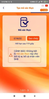Ứng dụng Mobile Soft OTP dùng để tạo mã xác nhận khi thực hiện các giao dịch