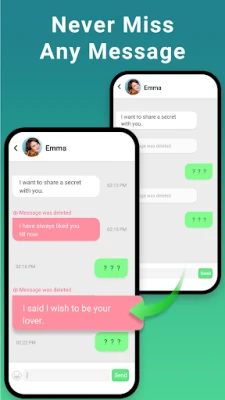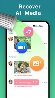 Silinmiş Sohbet Kurtarma, silinen metin mesajlarını geri yüklemenize ve silinen fotoğrafları, videoları, sesli notları, sesleri, etiketleri ve dosyaları kurtarmanıza yardımcı olan bir araçtır. Telefon bildirim geçmişini tarayarak, Mesajları Sil Kurtarma Uygulaması silinen mesajları tespit edebilir ve sohbet kurtarma Uygulamasında sizin için bunları gösterebilir.