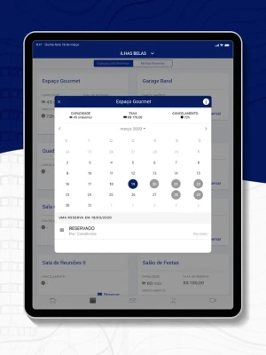 - reservas no salão de festas, mudanças e outras agendas,