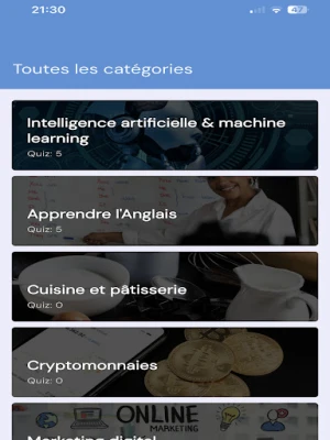 Caractéristiques principales : Cours interactifs et personnalisés : Profitez de contenus adaptés à votre niveau et à vos objectifs. Multidisciplinaire : Accédez à des leçons dans des dizaines de catégories, allant des langues aux sciences, en passant par les arts et la technologie. Apprentissage à votre rythme : Étudiez quand vous le souhaitez, où que vous soyez. Quizzes : Testez vos connaissances avec nos jeux quizzes. Suivi de progression : Visualisez vos progrès grâce à des outils simples et intuitifs.
