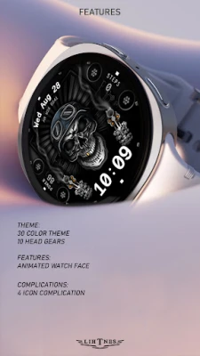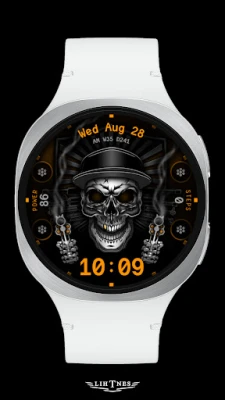 Handcrafted animated Skull & Guns watch face is full of animated graphics. It looks horrifying and dreadful.