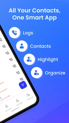 Our app shows an aftercall enabling you to identify incoming calls as they happen so you can access contact list, call logs, favorite (Highlited) Contact list and other calling tools (Organized) immediately after the incoming call.
