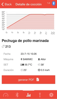 - Controla tu SmartVide vía Bluetooth cómodamente desde tu teléfono. - Crea y graba tus recetas favoritas en el SmartVide. - Monitoriza la cocción de tus recetas. - Consulta las cocciones realizadas. - Genera informes HACCP* en PDF con gráficas de evolución y tablas de datos, que puedes enviar a tu correo electrónico para almacenar o imprimir. - Crea tu propia lista de operarios y grábala en el SmartVide. - Y mucho más por venir...
