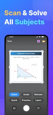 • Photo/Scan to Solve: Snap or import a question. Our math scanner detects the problem and returns step-by-step solutions.