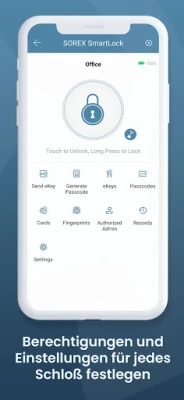 Mit der SOREX SmartLock App können Sie Ihre SOREX Türschlösser ganz einfach von überall verwalten und konfigurieren. Sie können Benutzern den Zugriff freigeben, Zeitprofile anlegen und Protokolle auslesen, sowie für gewisse Zeiten einen Durchgangsmodus festlegen. Je nach Ausführung des Schlosses können Sie darüber hinaus Zahlencodes, Fingerabdrücke und RFID-Medien anlegen.