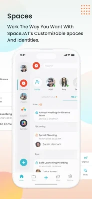 - The collaboration tools offered within SpaceJAT provide a dedicated space for all modes of communication, allowing you to enjoy isolated channels and scheduled or instant meetings.
