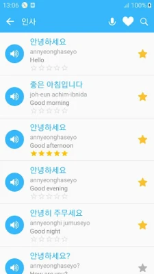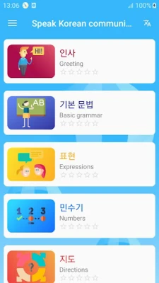 FEATURES • Commonly-used Korean phrases & vocabularies • Easy to store and manage your favorite items • Pretty UI, simple and user-friendly, support multi language • Huge amount of audio content, • Remind learn words or phrases • Speaking Korean