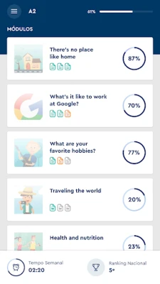 Com o nosso aplicativo você poderá aprender e praticar o Inglês de forma interativa e divertida. Temos uma ferramenta de avaliação de fala que sempre irá te ajudar a melhorar.