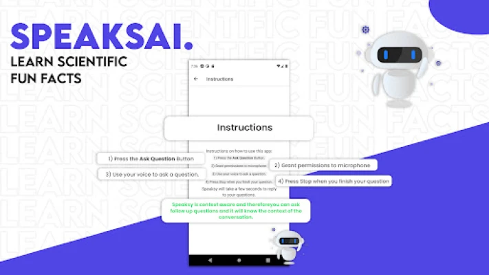 Introducing Speaksai, your personal AI friend! This innovative app combines the power of artificial intelligence with natural language processing to provide you with instant answers to your questions, all through a simple voice interface. Just ask your question using your voice. Communicate with Speaksai which is context aware and can be your friendly conversation buddy.