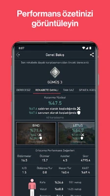 Kişisel Valorant Koçunuzla karşılaşmalarınızı gözden geçirin. İstatistiklerinizi analiz edin, kişiselleştirilmiş ipuçları alın ve yeteneklerinizi zahmetsizce geliştirin.